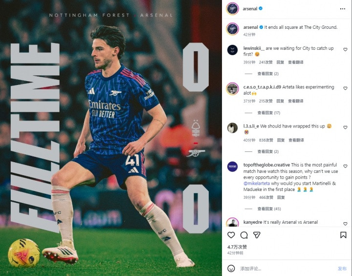 “这是本赛季我看过最令人心痛的赛事 ,为什么就不能抓住拿分的好机会呢?(@阿尔特塔)为什么要让马丁内利和马杜埃凯杆位?”