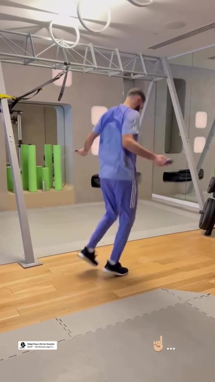 10月3日讯 本泽马更新社媒动态,晒出在健身运动练习 房内跳绳 的视频。