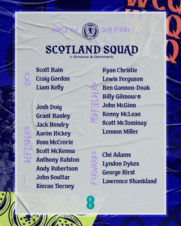 11月3日讯 苏格兰公布最新一期大名单,罗伯逊、麦金、蒂尔尼、麦克托米奈、吉尔莫等球员入选。