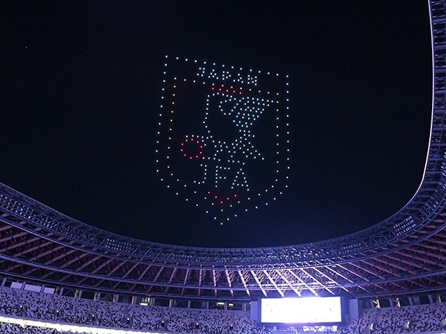 11月18日坐镇东京国立竞赛 场对阵玻利维亚队的赛事 ,500架无人机将在夜空中组成超大的日本队队标 。