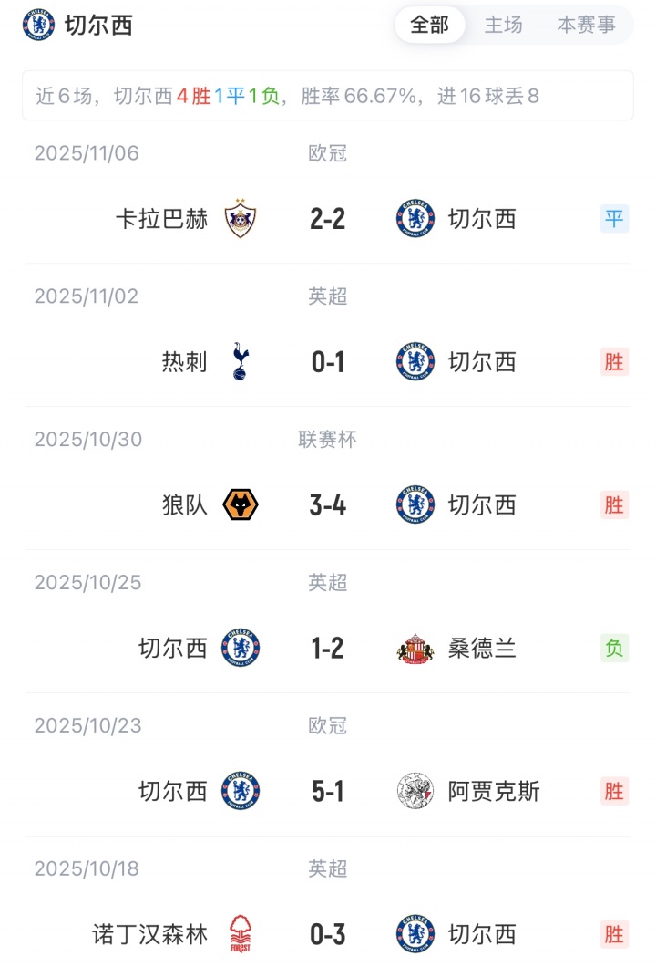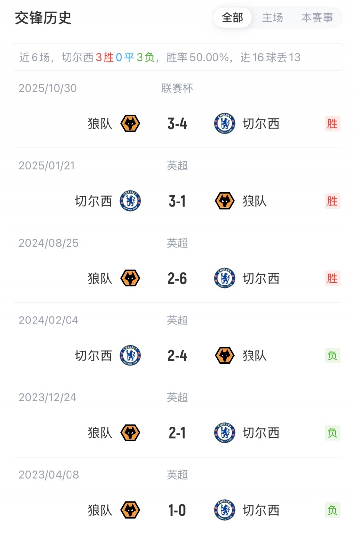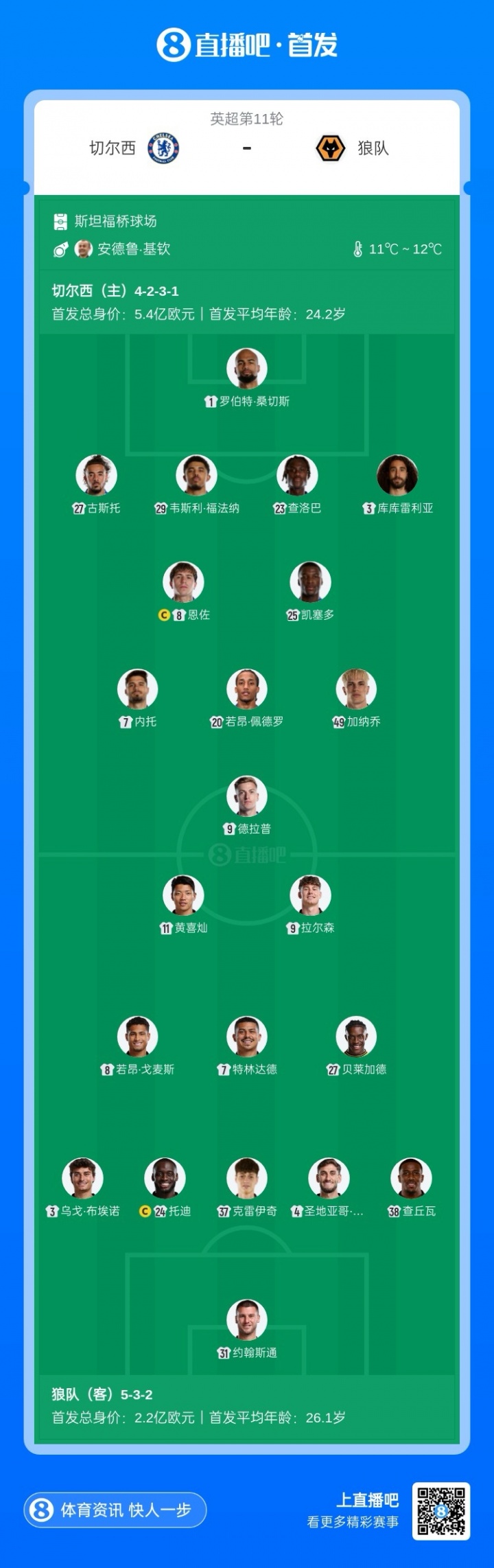 11月9日讯 英超第11轮,切尔西对阵狼队,赛前杆位公布。
