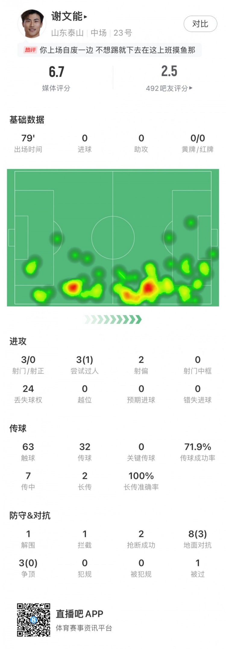 本场谢文能杆位出战,直到第79分钟时被彭逸翔换下。在这79分钟里,苏超直播谢文能多次传送球 错误 ,传送球 成功率仅有71.9%,此外他还有多达24次的丢失球权,3次射球 无一命中古代足球 门 范围,3次过人也仅有1次成功。